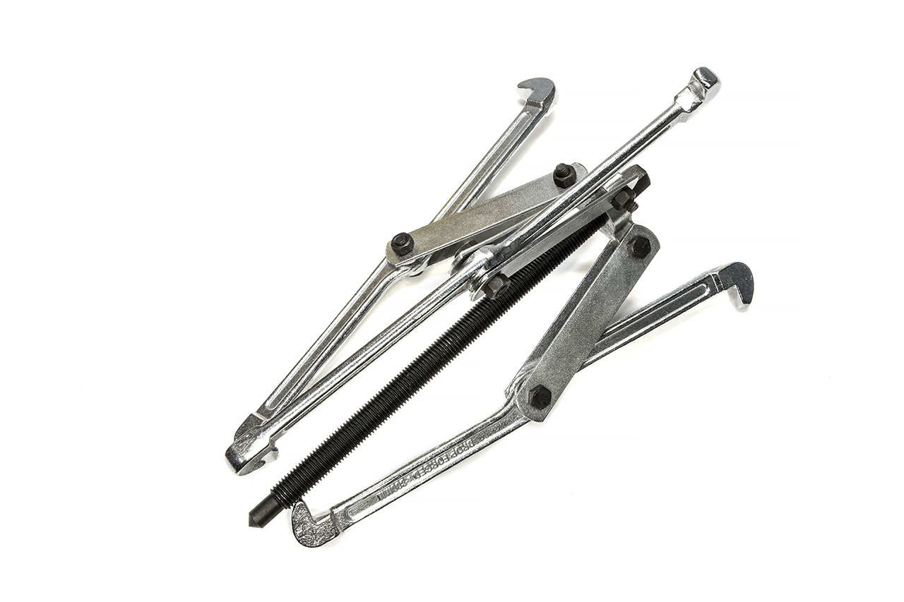 Описание: съёмник шарнирный 3-х лапый используется для демонтажа наружных подшипников, снятия шкивов и шестерён с валов. Конструкция съёмника обеспечивает автоматическое зажатие демонтируемой детали. Корпус и лапы съёмника изготовлены методом горячей штамповки из хромованадиевой стали, а винт имеет трапецеидальную упорную резьбу, что в комплексе обеспечивает прочность и долговечность изделия. Съёмник обладает двумя позициями рабочей длины за счёт переворачивания лап и использования дополнительных крепёжных отверстий.