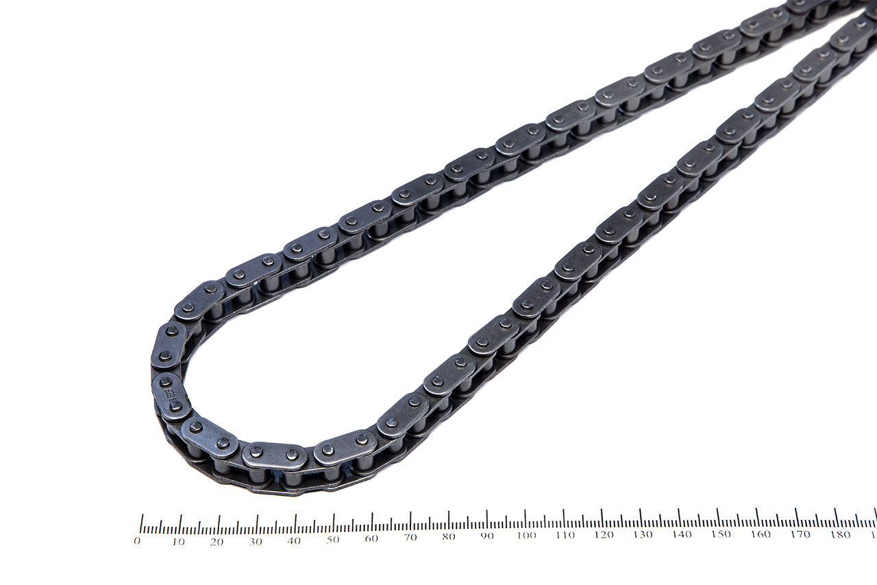 ПР — цепь приводная роликовая однорядная, пластины звеньев с прямыми боковыми гранями